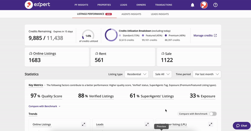 This gives you credit and helps you get noticed for your excellent service as well as improve your agent performance score on Property Finder.